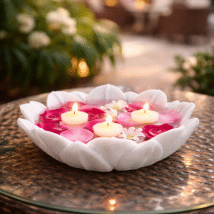 Subyaas Handcrafted Green Marble Lotus Bowl (6–12 Inches) | Luxury Organic Modern Decorative Bowl for Fruits, Jewelry & Vintage Home Décor