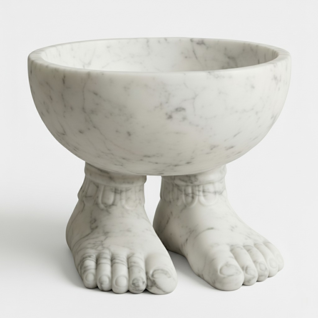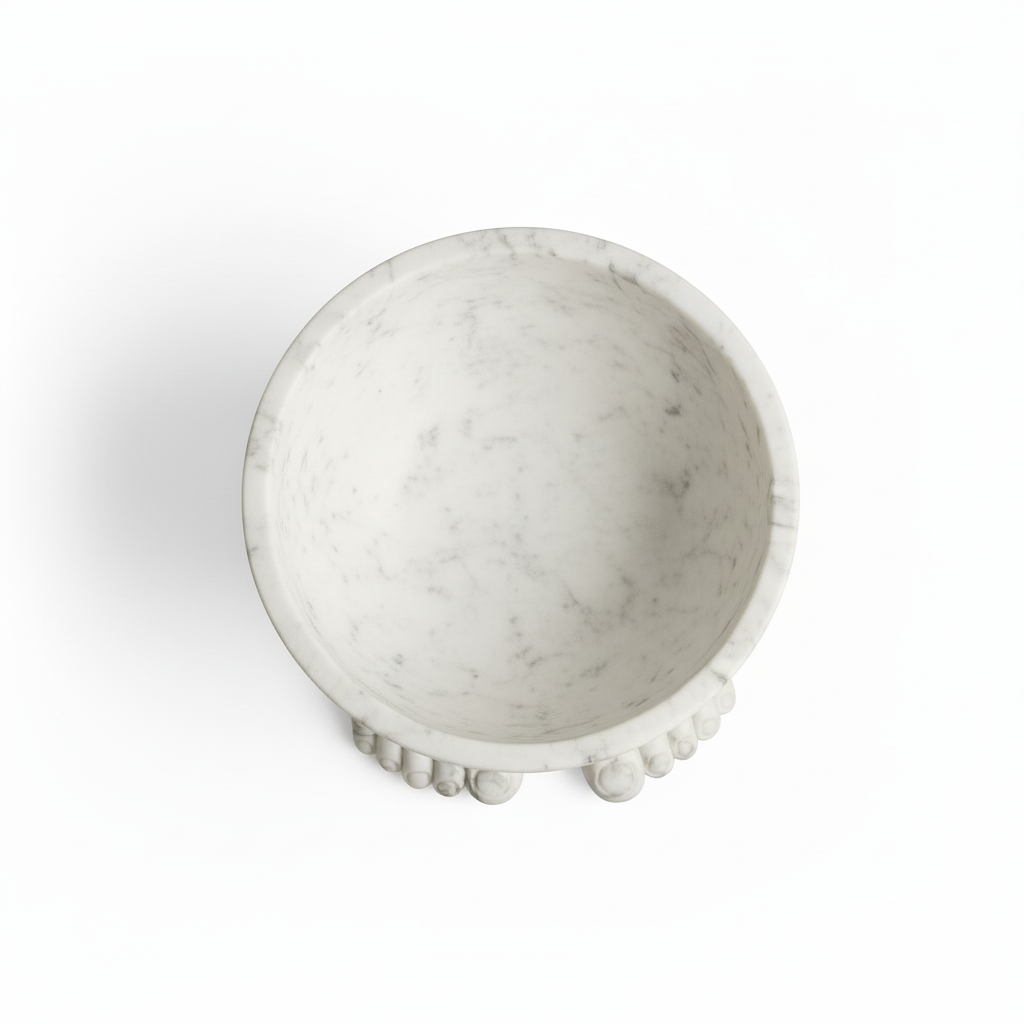 Elevate your interiors with the Feet Base Bowl — a handcrafted white marble masterpiece blending elegance, functionality, and artisanal craftsmanship.