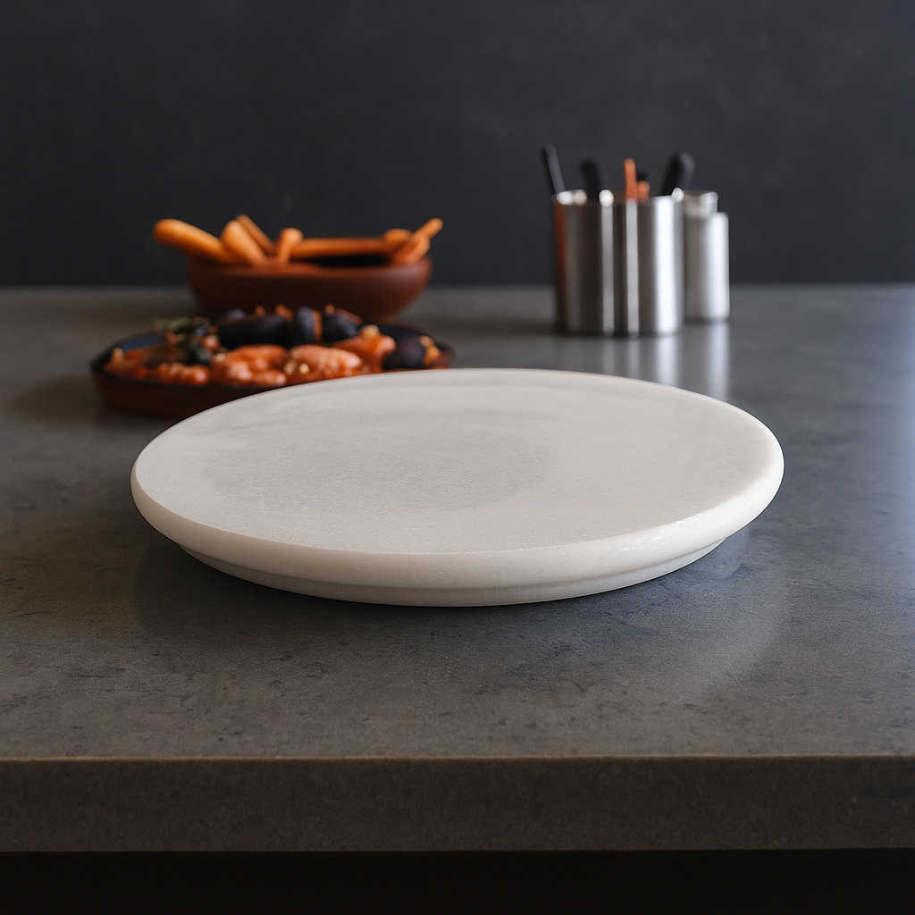 A Subyaas Marble Rolling Board is more than a utility tool – it is a decorative statement. The natural veining, smooth finish, and minimalist design enhance any kitchen décor. Whether placed on a countertop, open shelf, or dining table, it adds a touch of sophistication and understated luxury. Its presence elevates the overall aesthetic, making even everyday cooking a visually pleasing experience.