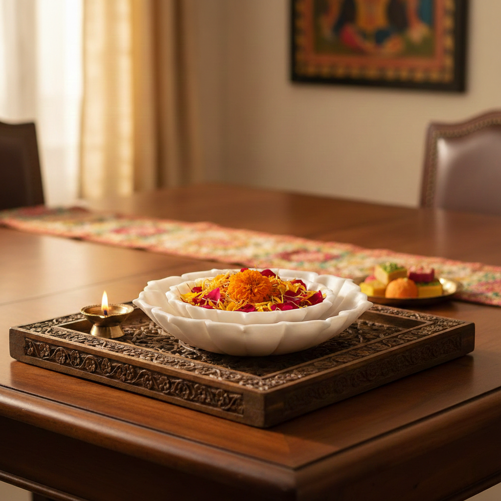 Placed in living rooms, dining areas, bedrooms, entryways, or pooja corners, it introduces a sense of grounded luxury and peaceful presence.