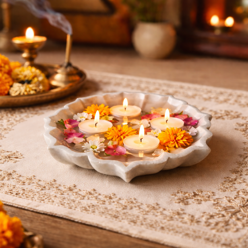 Designed for modern homes, luxury villas, boutique hotels, meditation spaces, and curated interiors, this marble lotus bowl seamlessly blends heritage Indian artistry with clean, modern aesthetics.