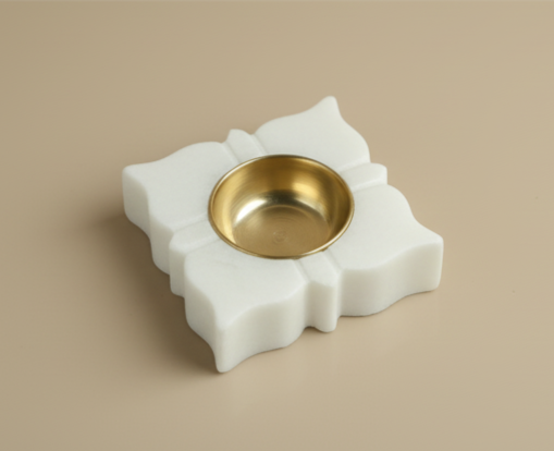 Each Nelumbo Diya is handcrafted by skilled artisans from Rajasthan, India, where marble and brass craftsmanship has been perfected over centuries. The process begins with the selection of high-quality white marble, chosen for its smooth texture, luminous appearance, and structural integrity. Artisans then carve the base with meticulous precision, ensuring that the curves, angles, and proportions are both aesthetically balanced and functional.