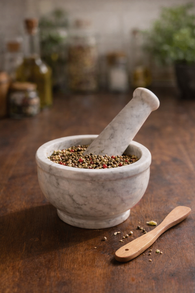 Unlike metal or plastic grinders, a marble mortar and pestle retains the natural oils and aromas of ingredients, intensifying flavors in your dishes. Whether it’s grinding cumin, coriander, pepper, or fresh ginger and garlic, this set ensures every ingredient releases its maximum potential, enhancing the taste of your culinary creations.