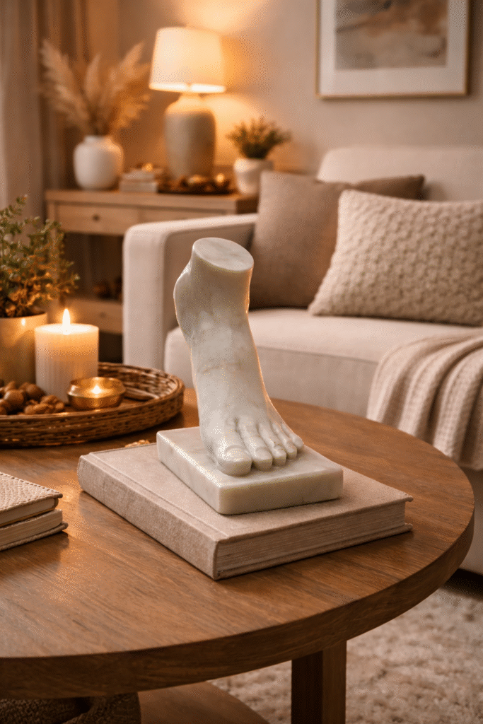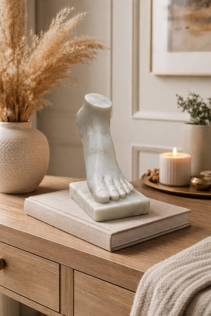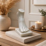 - Inspired by the enduring legacy of Roman classical art—balance, strength, and anatomical perfection—this Roman-Inspired Marble Foot Statue transforms an ancient sculptural fragment into a refined statement of museum-style elegance for modern interiors.